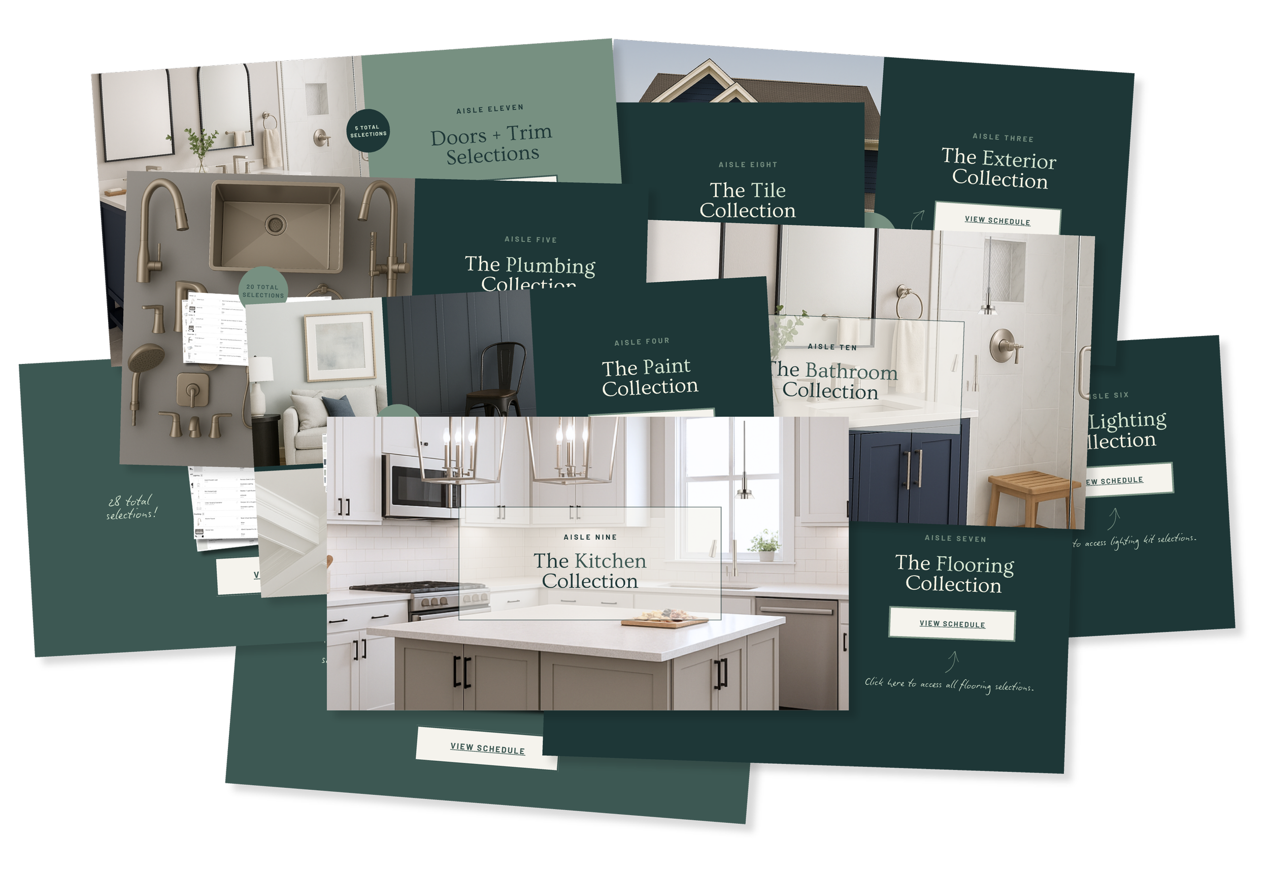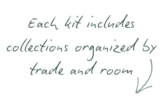 Each Kit begins with a signature look & feel, then unfolds into 8+ curated collections organized by room and trade. Collections include designer-crafted, interactive schedules that streamline your build from concept to completion.
