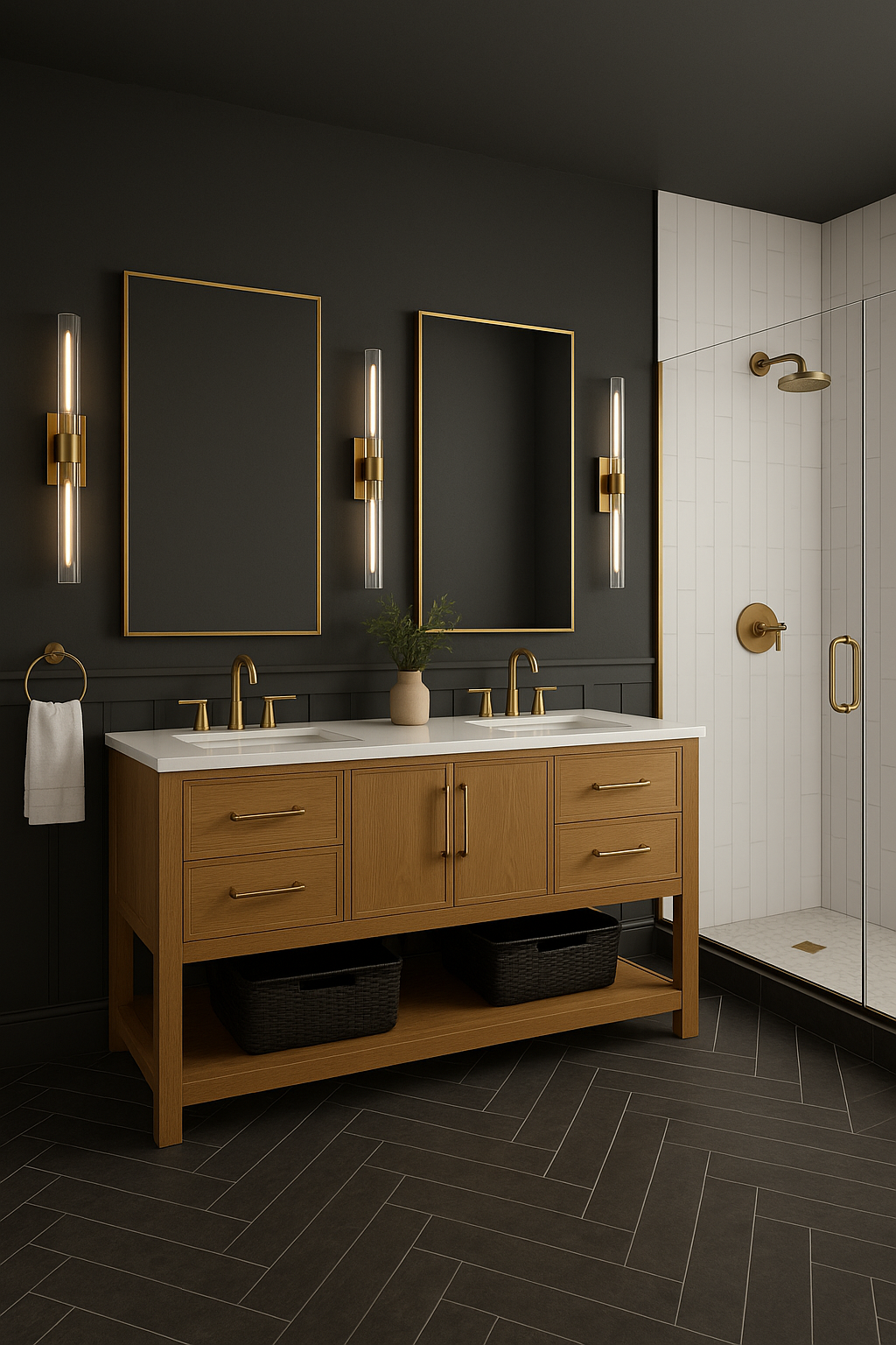 Moody tones, matte black accents, and modern edge. Great for buyers who want personality and market differentiation.
