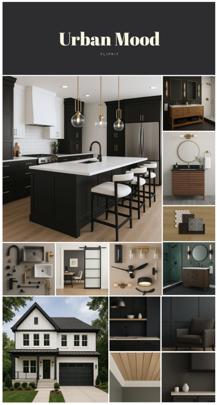 Moody tones, matte black accents, and modern edge. Great for buyers who want personality and market differentiation.